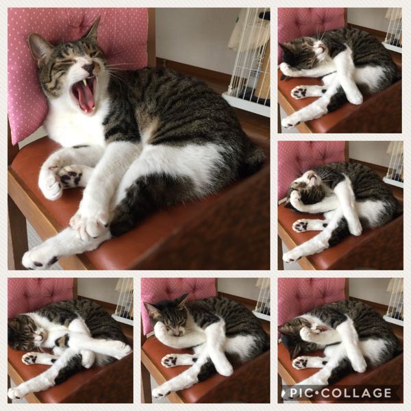 先ずはあくびして、お顔を洗って、毛づくろいして…