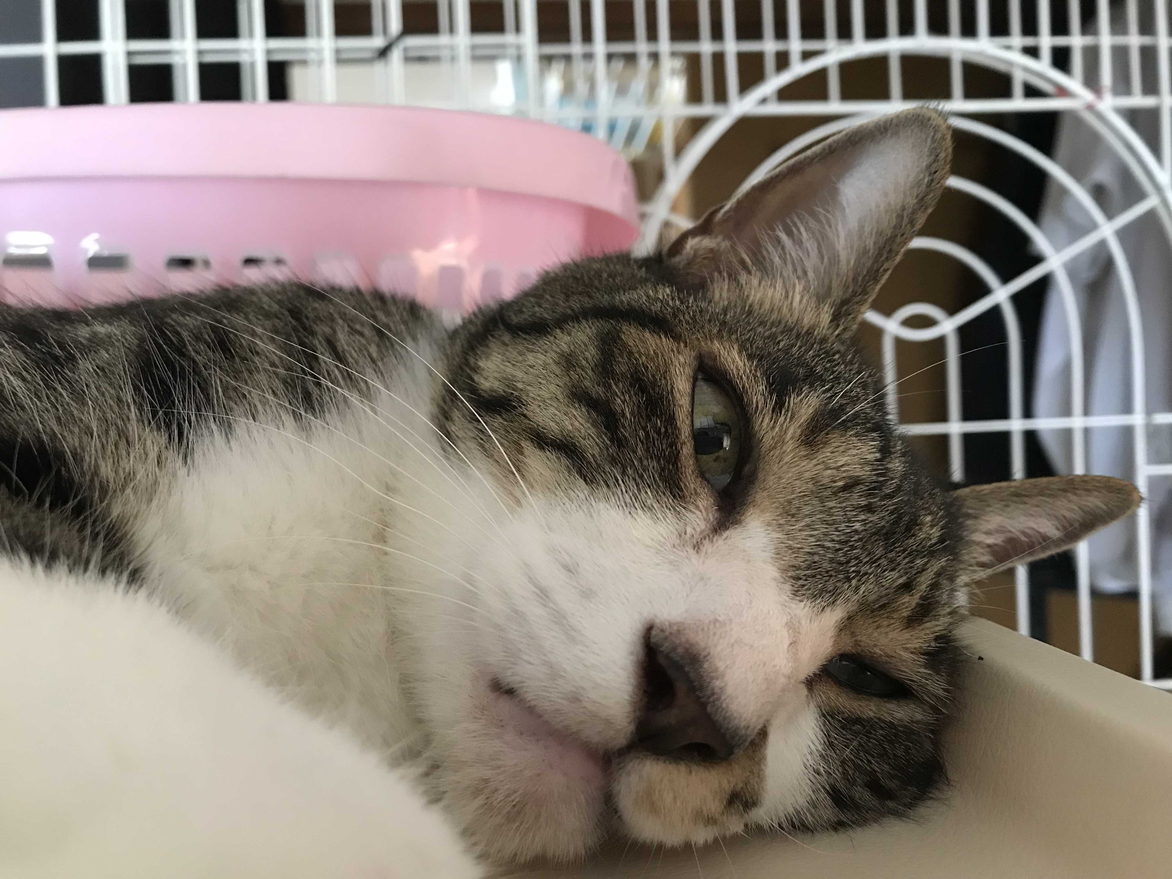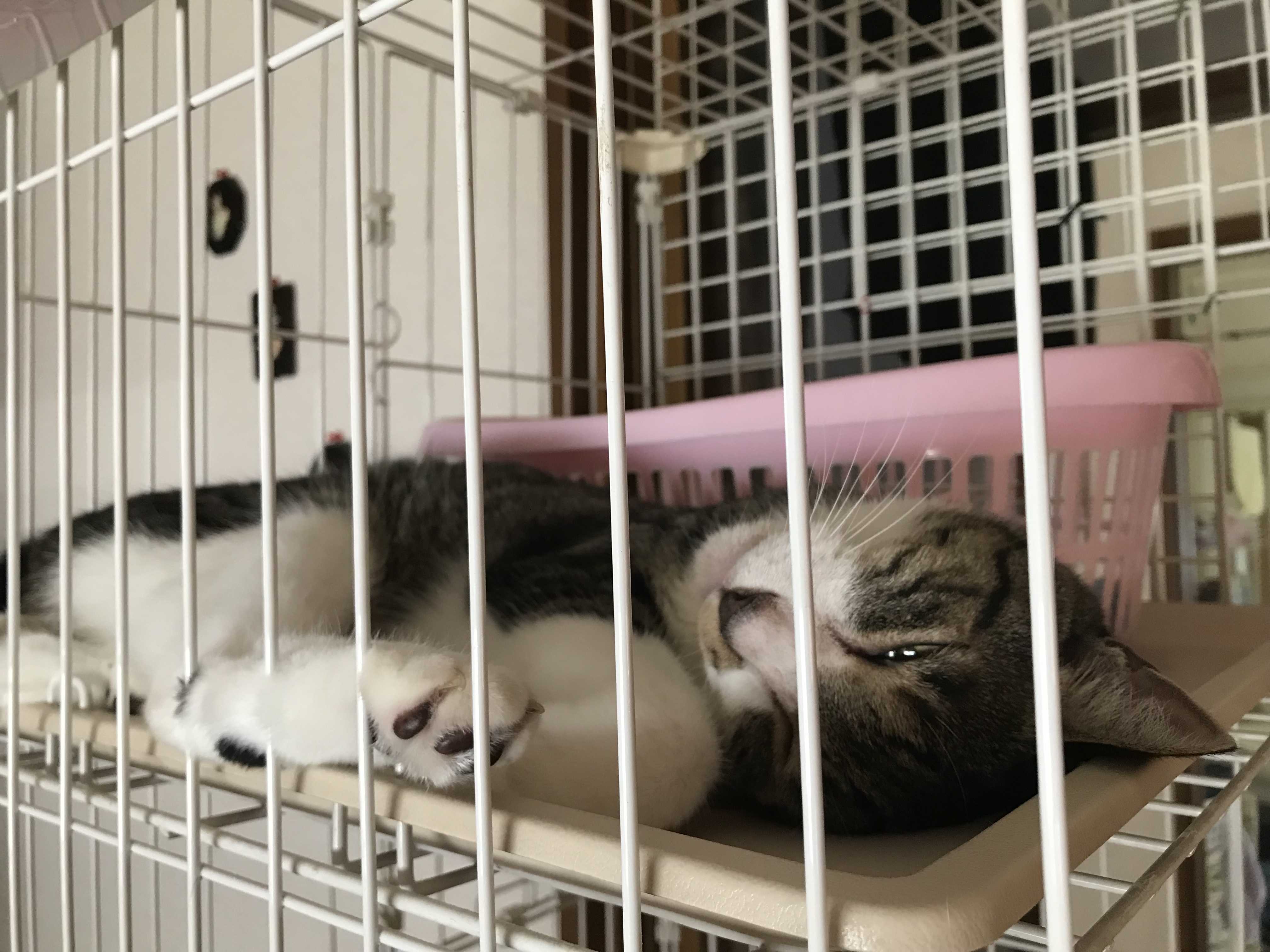 気が付くとゲージで寝ていました。