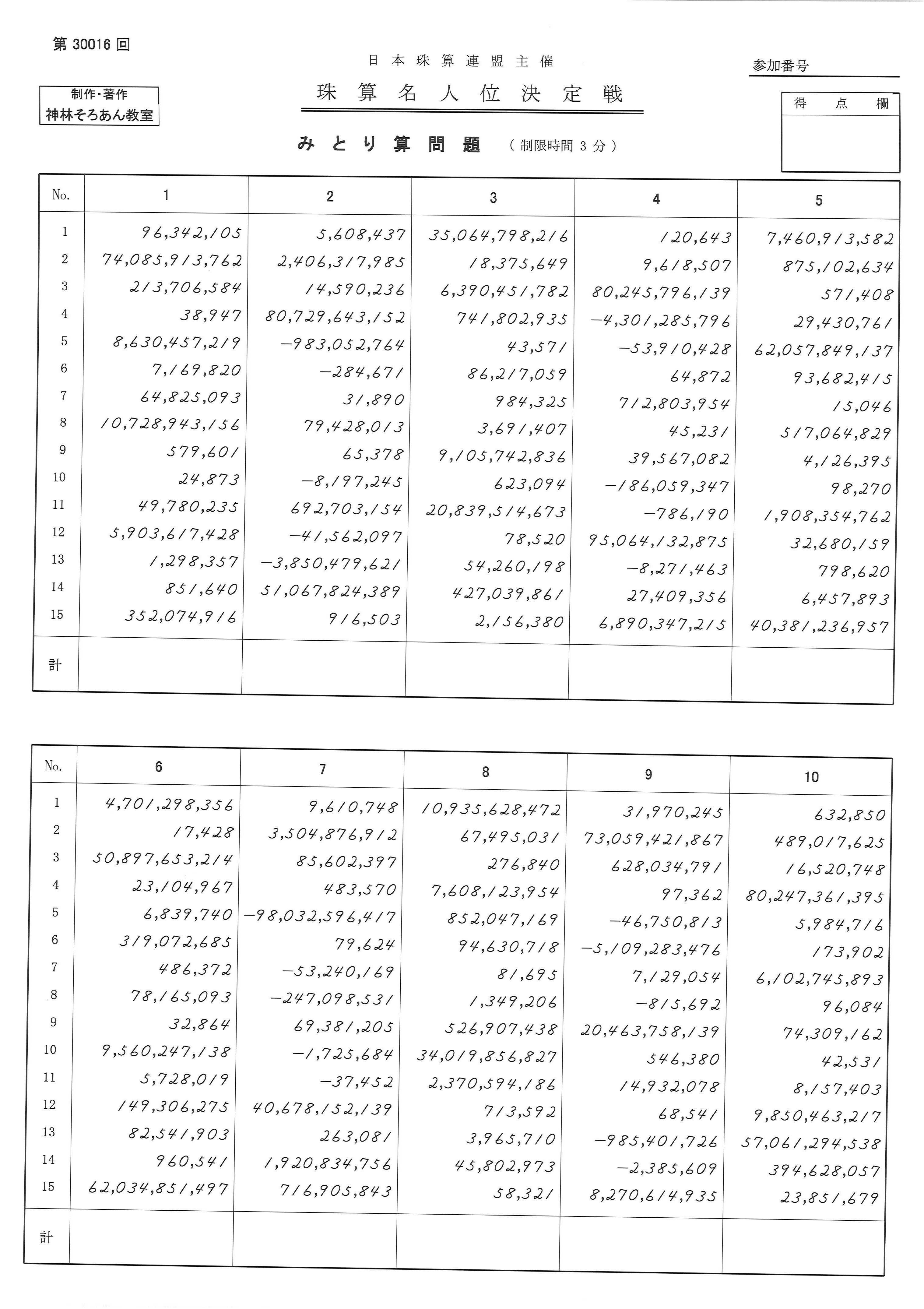 そろばん教室 横浜市神奈川区 横浜市緑区 横浜市西区(横浜駅前)のそろばん教室 藤沢市本鵠沼のそろばん教室七島教室 横浜市神奈川区七島町123 七島交差点脇東本郷教室 横浜市緑区東本郷4-13-31 本郷神社前横浜駅前教室 横浜市西区北幸1-1-8 4階 レンタルスペースみなとみらい教室 横浜市西区高島2丁目11-2 724藤沢教室 藤沢市本鵠沼3-12-30 302ベトナム料理店上教室のインスタはこちら教室のfacebook 教室のHPはこちらゆうゆう散歩 クリック!●日本珠算連盟正会員(会員No.41800240)●フラッシュ暗算検定施行塾〇アバカスサーキット306戦本番問題28日(土)までになります何かの理由により、教室で実施できない人は、メールに問題を添付します。件名 アバカスサーキット本番問題 soroan123@yahoo.co.jpメールを送信してください