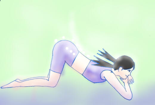VenusYoga しなやかな女神にYoga Pose No.3 お尻を動かすネコのポーズ四つん這いのネコのポーズが簡単に出来る人は。肘から先を床につけ顔を腕に乗せて見て下さい。女神が神殿で、可愛いネコに変身して体操をしているような気持で♪このヨガポーズをしてみましょう。息を吐きながら、胸をゆっくり~床に近づけます。体の前面が、伸ばされます。胸の中が広く開きます。バストを内部から形良くします♪お尻を天井に突き上げた、ネコの背伸び姿勢です。その可愛いお尻♪を、左右に倒します。ゆっくりと床につかないぎりぎりまで、横に倒しましょう。息を吐いて倒し、息を吸って戻します。右に倒したら次は左へと交互に倒しましょう。体の内部、お腹、腰の中を感じてみましょう。いつも使ったり、伸ばしたことのない所が”声”を発します。今はネコに変身しているのでネコ語でしゃべります♪次は側屈です。お尻を曲げ、肩に近づけます。目線は曲げたお尻の方を見ましょう。お尻についてる尻尾の先が顔に近づくイメージが楽しいですね。曲げた方と反対側が気持ちよく伸ばされます。今回紹介した、お尻を倒すネコのポーズ、お尻を曲げるネコのポーズは、♪背骨に良い刺激を与え、柔軟にし、神経を整えます。♪ウエスト引き締めに効果があります。 VenusYoga INDEXへ