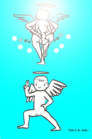 ヨガポーズを固定的に行なうのでなくそこから揺らしてみたり捻ってみたりしてみてください。意外な発見があります。固いところ、やりづらい角度が分かったりほぐしかたのヒントを見つけたりします。 それでは、、僕が発見したヨガアサナの応用の動き、やってみて気持ちよかったものをご紹介します。モデルはヨガQちゃんです。ヴィラバドラアサナでお尻ふりふり☆YOGA-Qヨガヴィラバドラアサナ(英雄のポーズ:戦士のポーズ・ウオーリア)の立ち方で腰の横に手を当てお尻を左右に振ってみます。吐く息で左右に振り、真中に戻すとき息を吸います。腰の周りの筋肉の感覚や、股関節の動きバランスの左右差を感じてみてください。前後の足を入れ替えて見てください。痛気持ちいいところを見つけそこを回数多くやってみましょう。やったあと腰がすっきりします。また立ち姿勢が安定してきます。d(^-^)