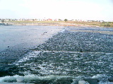 浅瀬には鷺が、長い首を立て水面を