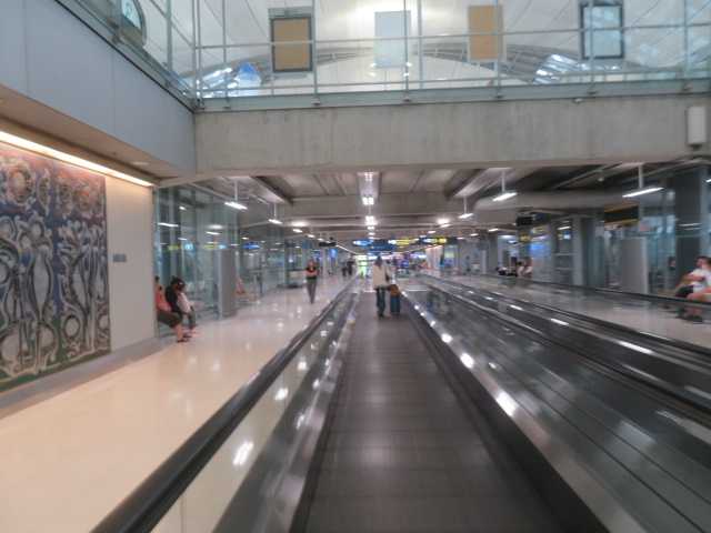 翌朝ホテルの部屋からの風景。朝ではなくてもうお昼に近い時間なのでチェックアウトしたのか車があまりありません。遠くにはレーダーとタイ国鉄の高架橋。チェックアウトして空港に向かいます。工事中の運河。きっときれいに整備されるんでしょうね。そうなったらまた来てみたいです。高架橋下の道路に出ました。そしてドンムアン駅に上がるエスカレーター。高架橋の下は駐車場・駐輪場になっています。エスカレーターで上へ上がります。ドンムアン空港駅の待合室。この日はレッドラインに乗るのではなくそのまま空港へ向かいます。あまり混雑はしていませんね。時間帯なのか。空港ターミナルへ向かう連絡通路。連絡通路の下にはこれまた車が行き来します。空港のターミナルビルはあそこです。