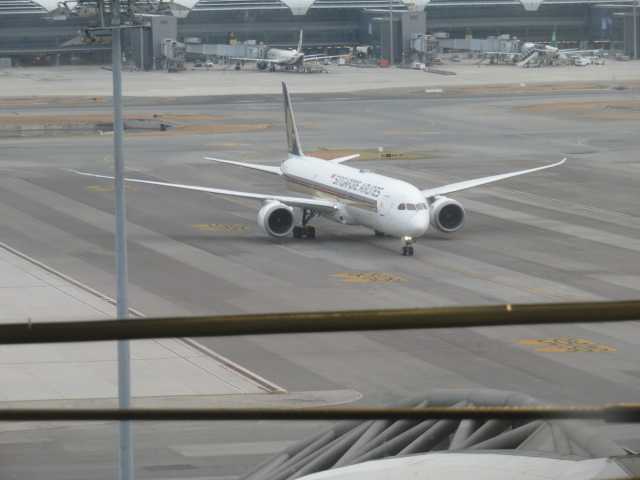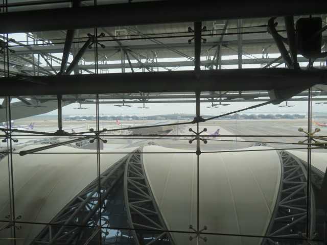 ANAのチェックインカウンターがオープンするまでここで待ちます。名ばかりの展望デッキ。業務提携したトルコ航空とTG。縞々模様のドイツのコンドール。おぉ~ANAの尾翼が見えます。ズームアップで一枚。スクートです。フィンエアも到着。サテライトターミナル側。こちらにはスプリングエア。台湾のスターラックスですね。サテライトターミナルに駐機しているTG機。TG機が並んでいますが、手前は旧タイスマイル塗装機。シンガポール航空と手前にタイスマイル塗装のTG機です。