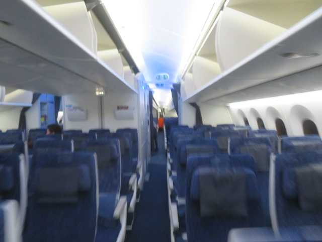 TGのラウンジを出て搭乗ゲートに向かいます。コンコースEへ向かいます。コンコースE。ここにもTGラウンジがあったんですね。チェックインの際お勧めはDコンコースのラウンジということだったので。免税店が並んでいます。こちらは今タイで大人気のコビトカバの赤ちゃんムーデンのぬいぐるみ。カラフルなクマのぬいぐるみ。BENTOは既にタイでも通用します。Eコンコースにやってきました。搭乗ゲートはE4。E4ゲートです。NH850羽田行。TGとの共同運航便です。搭乗待合室へ向かいます。ガラスの向こうに搭乗機が見えます。ANAの搭乗方式はグループ制。搭乗機です。B787ー900。搭乗開始です。搭乗機へ向かいます
