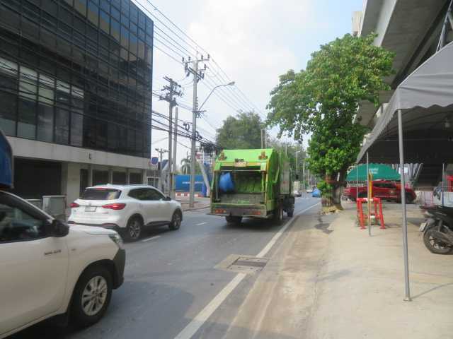今日から6月ですね。タイでは雨期真っただ中です。ドンムアン駅からホテルに向かって歩きはじめました。反対側に渡ります。上に見えるのがドンムアン駅です。高架下にはいろいろなお店が並んでいました。招き根期の暖簾を発見。ポークサテー75バーツ。手作り感満載のお店です。お店の入り口はこちらのようです。タイの伝統的家屋という感じの家ですね。レッドラインと並行している道路はチェットウィッタカト通り。高架橋の左右にある道路をつなぐチャンアカットウィット通り。そこを右に曲がると左手には警察署がありました。まっすぐ進むと橋がありました。プレムプラチャコン運河。運河沿いでは工事をしていました。そして見えてきたこの建物。ここを右へ曲がるはずです。ホテルの案内板がありましたここです。このホテルです。MOJIホテルです。