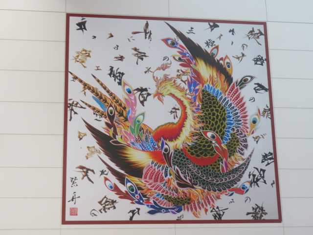 ターミナル内にあったこれは鳳凰でしょうか?羽田空港第2ターミナルの新しくできた部分です。両替をしたいのですがまだ開いていません。日の出を迎えだんだんと明るくなってきましたが、どうやらこの日の天気は雨ということです。滑走路の向こうにコンテナを積んだ貨物船。ターミナル内にはこんな屏風もありましたよ。日本らしいですね。ここに説明がありました。間もなく両替所が開きます。両替をしてから、この日女満別までの便を夕方にしてあり、その間を利用してちょっと用事を足しに。まずはモノレールに乗ります。しばらくここで時間をつぶしました。そしてモノレールでまずは浜松町へ。