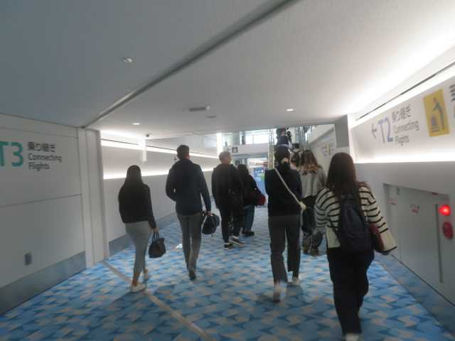 このカウンターで国内線の乗り継ぎ手続きをします。