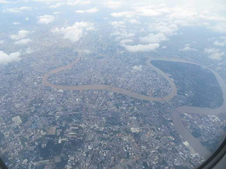 曲がりくねったチャオプラヤ川。この川の下からサムットプラカーン。
