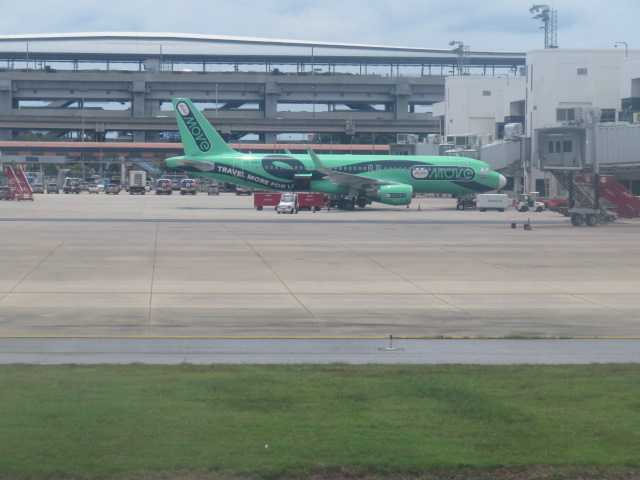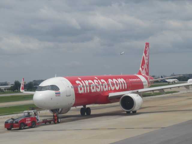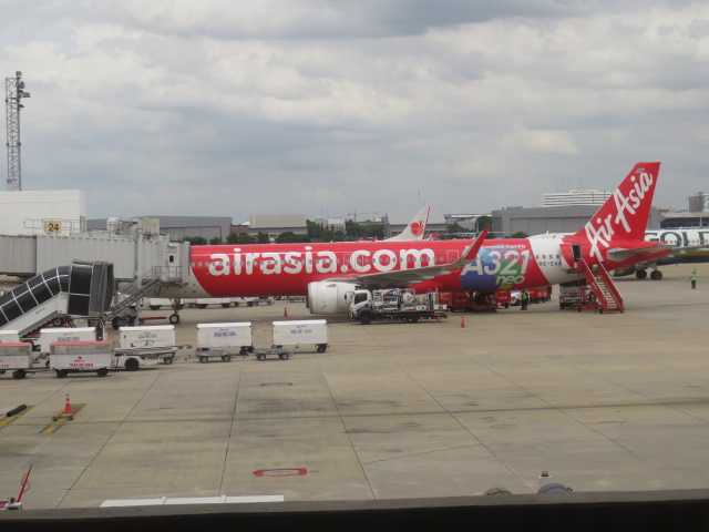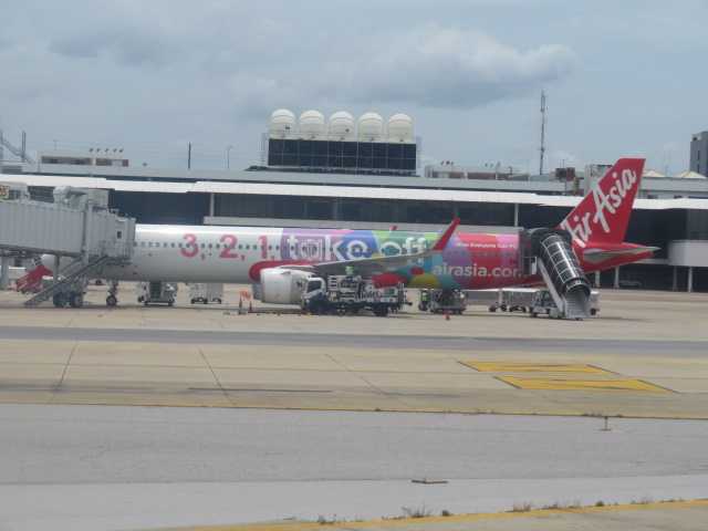 タイ国鉄ドンムアン駅とその前にはエアアジアのアプリMOVE塗装機。