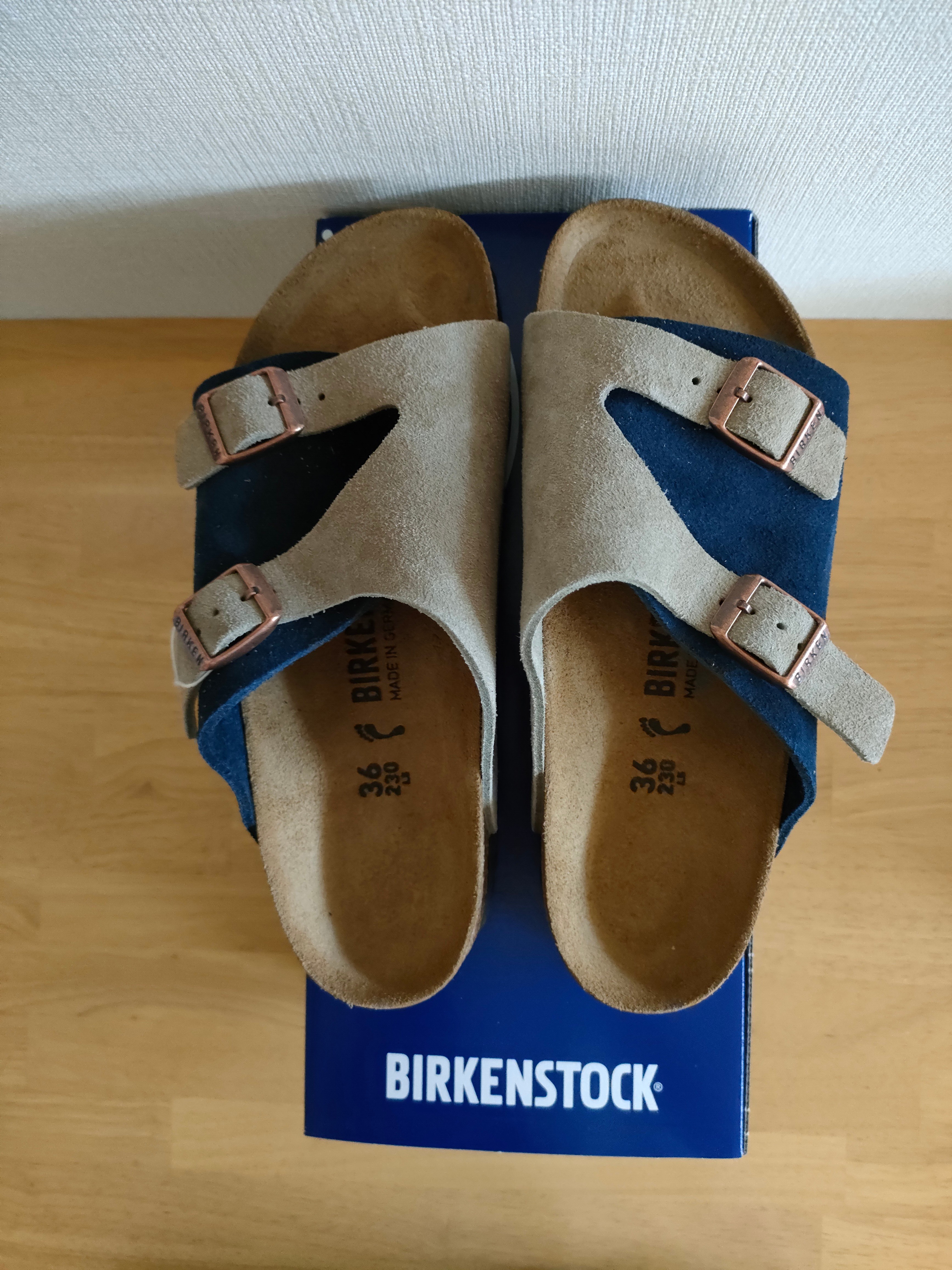 5足目のビルケンシュトック。今年の夏の戦利品!何年か前の限定デザインで、アウトレット品・なおかつサイズもこれしかなくて、シンデレラの靴だったんです。先週末にMarimekkoのカバン同様、40%→55%OFFになったので瞬殺購入です!笑夏は藍染めの服や麻色の服が多いしモノトーンの服ばかりあるのでバイカラーでも自分の手元服にはめっちゃ合う〜♫チューリッヒのいいところは、片足に合わせてサイズ調整ができること。私の足は右と左で若干サイズが違うので、それに合わせて自分で調整できるのは魅力的♫あと、靴下に合わせてオールシーズンいけるのもいいよね!モンタナの、黒とトープもデザイン違いであるんだけど、トープは可愛くても汚れが目立つから、半分ネイビーだと安心だし、何よりおしゃれ〜♫夏は終わりに近いけど、まだまだ今から活躍してくれる一品です。