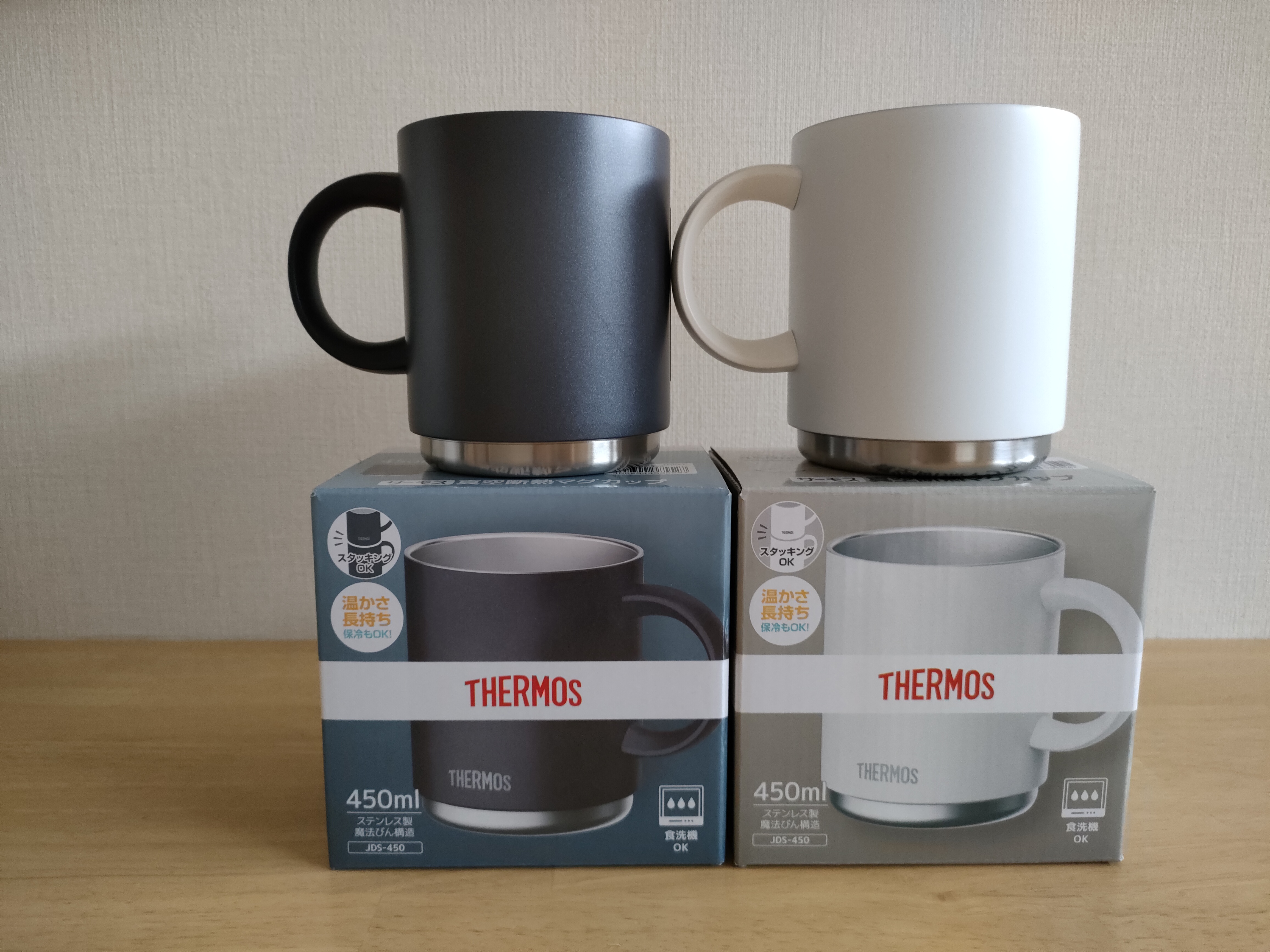 先日、とあるらーめん屋にいったときのこと。外は熱気のような熱さで店内も調理の熱も加わって、お世辞でも涼しいとは言えない状態。そこで出された一杯の水。「く〜!!冷たくてうまぁ〜!!」と私。そこに旦那が、「結露せんがやなぁ〜」と何気なく言ったんです。…⁉️なんと!確かに言われてみれば、店内の熱気に当てやられもせず冷たい水を提供、それも結露知らずのコップ!?それが、魔法びん素材のコップってわけですよ。…早速、家帰って楽天検索しちゃいまし笑↑珪藻土のコースター水分とってはくれるんですけど、汚れが目立ってとれないのが前から嫌だーとごねていた私。(裏がコルク素材のこの品は、ニトリさんのもの)魔法びん素材で食洗機かけれて、容量もたっぷりのものを調べていたら、上記のTHERMOSマグカップにたどり着いたわ・け♡当初は、タンブラー型とか考えていたんですけど、家の食洗機の高さがどうも合わなくてマグカップ型に変更。でも、とってもあるし、ぽってりフォルムが可愛いので正解でした♫なので、購入される方は食洗機の高さには注意が必要ですよ〜