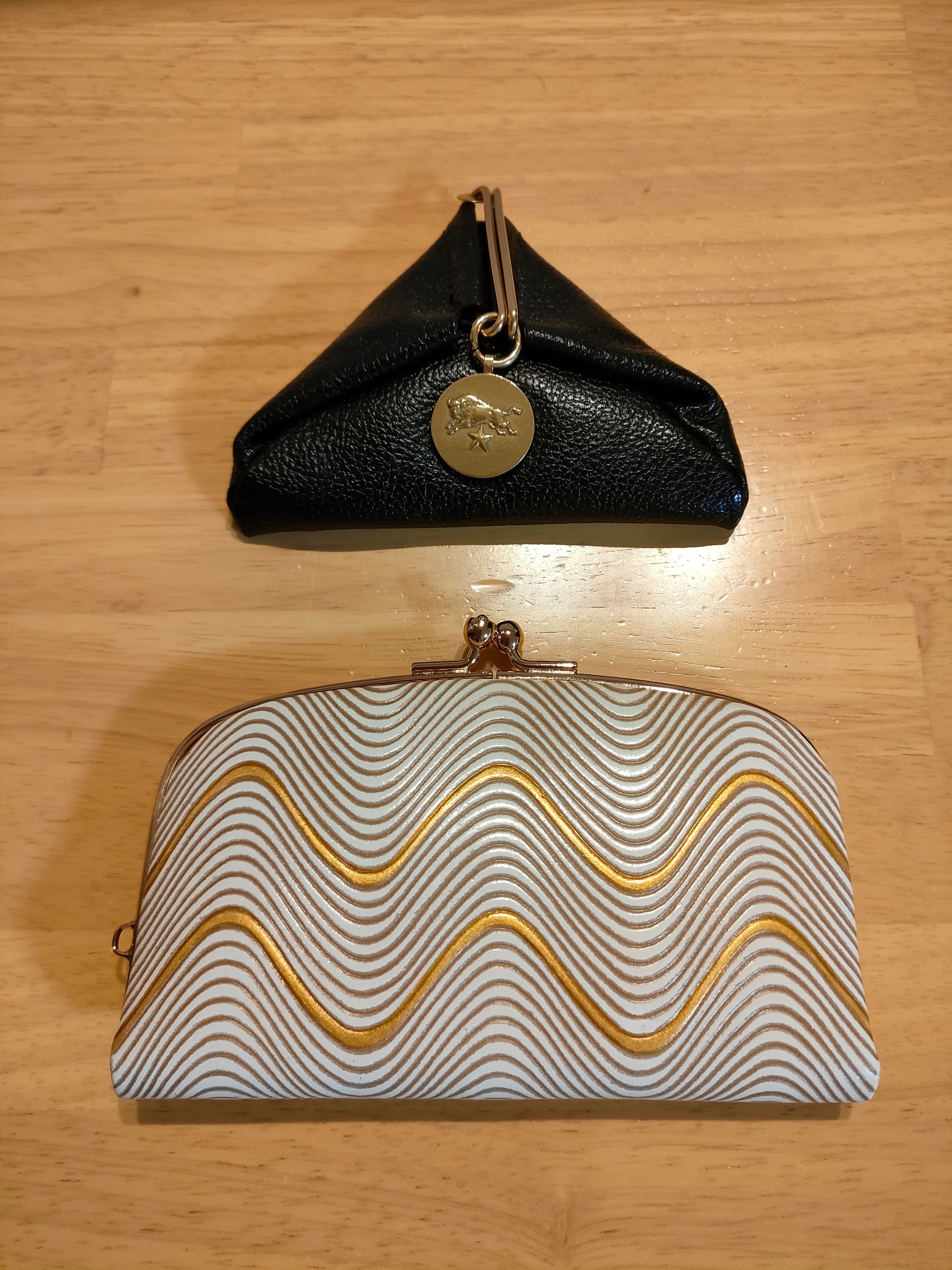 がま口…昔から大好きなんです。あの、ぱちんってする瞬間とか無駄にしちゃいますね笑最近、滅多に現金を使わないので、文庫屋大関の天溝がま口とイルビゾンテの小銭入れを持ち歩いています。仕事場には小銭入れだけを。お出かけするときは、両方を。そのときそのときで、使い回しています。クレジットカードも、基本はお出かけするときしか持ち歩かないので、普段は小銭入れだけで充分。実際は、水金の文庫革の財布なんだけれども、このモダンな波のデザイン…好きだなぁ〜…♡洋にも和にもあうし、この財布なんといっても薄い!!だから、着物の帯に挟んでも粋なんですよね〜♡…でも、天溝がま口はすでに生産終了商品なのでとても大切に扱わないといけないんですよ。イルビゾンテの小銭入れは、去年のホワイトデーのお返し(例の後輩くんから笑)なのですが、これも高級感あって使いやすくて私のお気に入りです♫皆さんは、どんなお財布の形や使い方をされていますか?分けて使うのも、結構便利ですよ♫