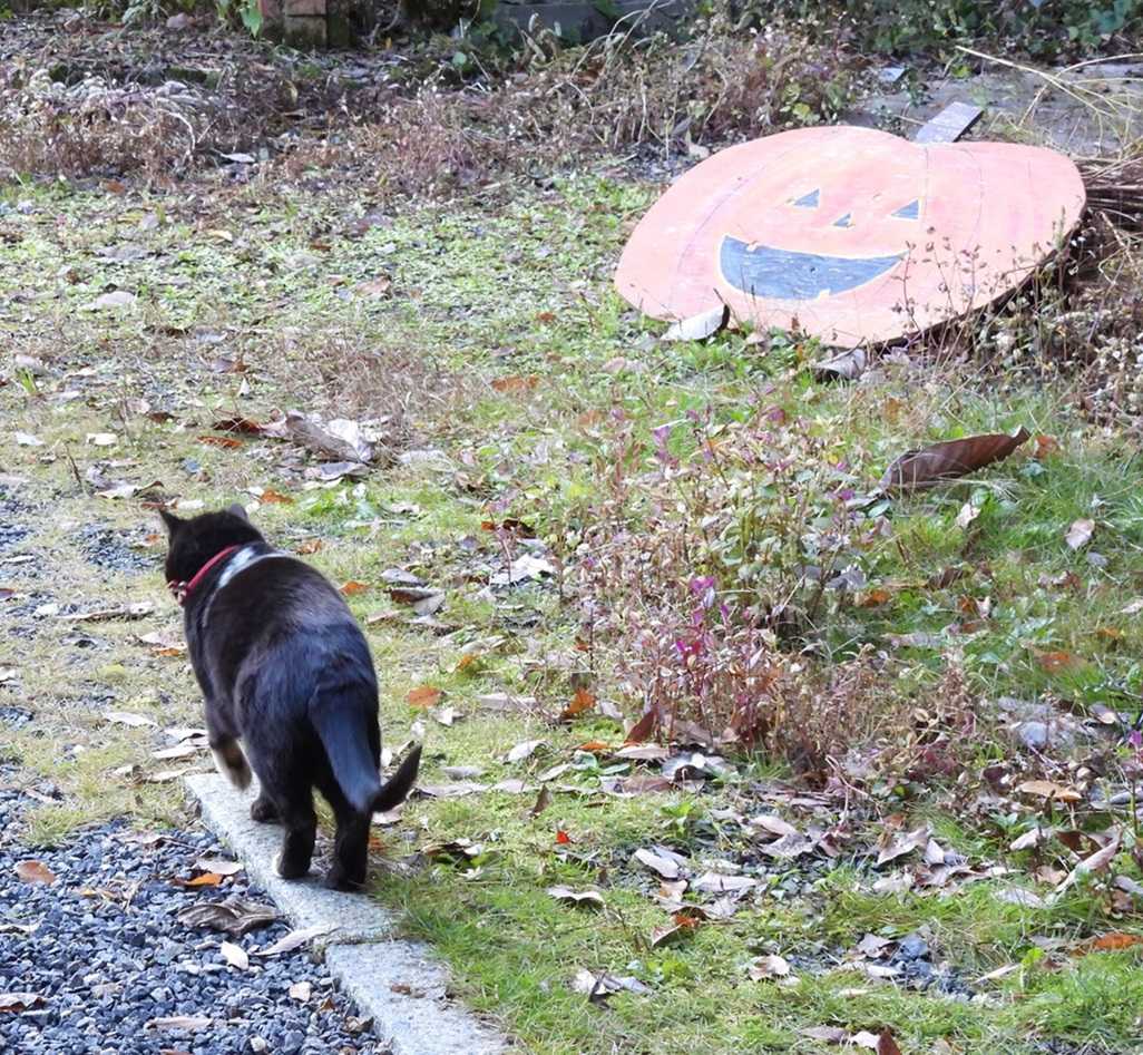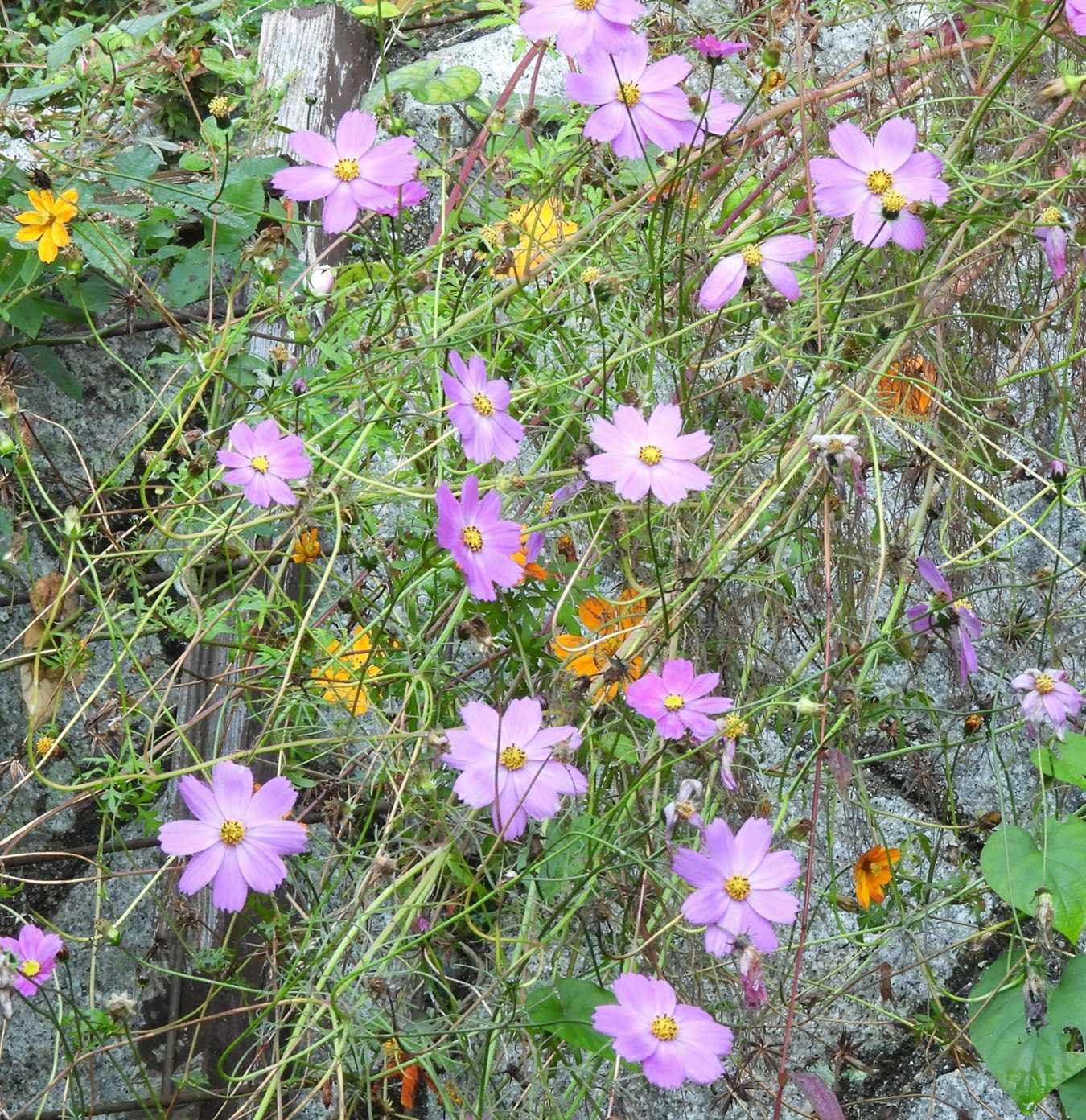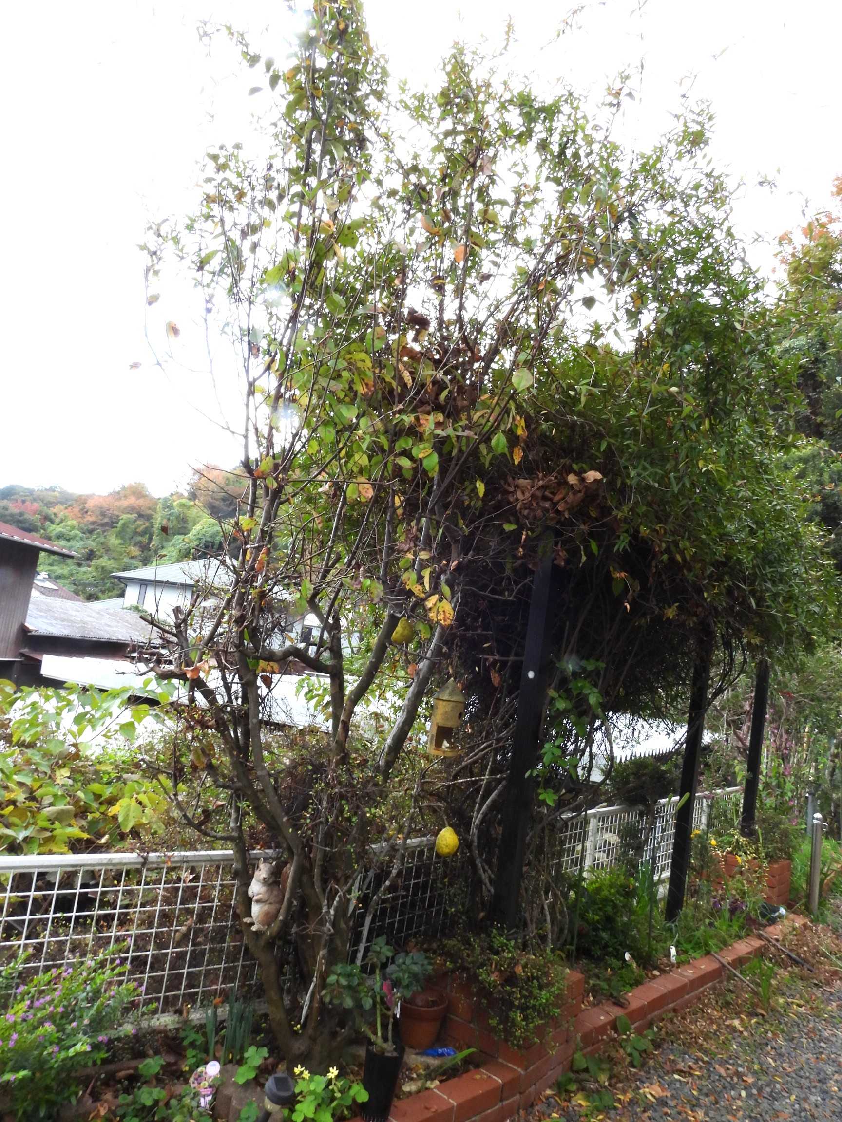 シュウメイギク・名残惜しいコスモス・捕食中のモズ・カリンの剪定