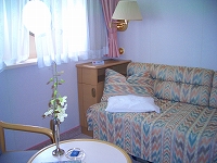 ケイタイから投稿。17日朝、大阪港出港し三重県熊野に向かう。朝は昨日と同じくウォーキングとストレッチ教室に参加した。朝から晴れていて海からの風を受けてのウォーキングは最高の気分。 今日はエアロビクス教室はなかったが、 シアターでトム・ハンクス主演『ターミナル』を見た。 2004年作のいい作品だった。 昨日から力が入っていたのがフッと抜けた。 両親に朝から会ってないし!!! ◆部屋です 今日は朝食も昼食も一人で洋食。 またケーキ3個! どうしよう! 尚且つ、午後は部屋でうたた寝しつつビデオ。 あまりにお腹がいっぱいで眠くて… ◆収納がたくさんあるのが嬉しい 父と母も今日はだいたい別行動だったらしい。 マジック教室・ピンポン大会・パットゴルフ・ジャズ・ ピアノ・手芸… いろいろやっているので何かしら遊んでいたようだ! でも父は夕食をパスして部屋で休む。 3時のお茶も摂っているのでいいでしょう。 (写真を撮るのを忘れて少し手をつけちゃった) 《花火縁高御膳》 ★先付け 枝豆豆腐 生雲丹・山葵・土佐醤油 ★向付け 沖鱒グレープフルーツソースかけ ★蒸し物 ふかひれ茶碗蒸し ★銀の重 鴨ロース煮・モロヘイヤお浸し・鰆西京焼き・厚焼き卵 松茸小芋揚げ・海老真丈花火揚げ・花人参 ★金の重 火薬ご飯 カリカリ梅 牛肉しぐれ煮・鉄砲漬け ★ジュンサイ赤だし ★ココナッツアイス スターフルーツ・金平糖母と二人で夕食。今日初めて顔を合わせた。和食。同席した方のお話によると「金と銀のお重」というのは、茶道ではお正月などのお目出度い席で出される物だそうだ。まだお腹が空かないうちの夕食だったけれど、一つ一つがほんとに美味しい。ほとんど食べちゃったよ。ああ恐ろしい…一休みして7時20分から、熊野大花火大会。熊野在住の「JE2LUZさん」はその花火が上がる場所の中心に家がある?そうですね。それってすごい。花火の途中で小雨が降ったが何とか大丈夫。海に花火を投げ入れるのかしら?海上で半円の花火が面白かった。今夜も10時からダンスタイムだが、もう勘弁してもらう。こんなにのんびり遊んじゃって日常生活に戻るのが大変! ◆ドレスコードは「カジュアル・浴衣可」 ワンピースも用意してきたが、 花火なのでいいかな・・・と昼間のままで。 やっぱり、ワンピースにしておけば良かった! 若い子ならこれでもOKだけど、 この豪華和食にこの服装は失礼だったかも。。。 食後の退席はコソコソと。