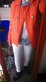 昨夜、晩ごはん後にお饅頭を夫と半分づつ食べたら「甘いものスイッチ」が入りチョコレートが止まらなくなって個包装のチョコを10個ほど食べてしまった。。。今日は未だに胃がもたれ気味です。バレンタインデー以降、悪い習慣が続いていますさて。いくら寒くても昼間はもうダウン封印。(夜出かけるときは着るのでしまい込んではいません)キルティングのオレンジアウターはけっこう気に入っています。春らしいいかな?ルンルン。 と思ったら画像は秋っぽい???で、おまけにお肉売り場でふと隣を見たらそっくりな色のジャンバーを着た65才くらいのオジサマが!キャー!同じ色~!っと、サッサと逃げました!そういえば、こんな色の「オジサンジャンバー」よくありそうです(=_=) 今日のコーディネートは? 健康でダイエット! クリックが更新の励みになります。いつもありがとうございます。 コメントをくださるなら別館「アイコ掲示板」 または「おきてがみ」でも 5月の舞台が終わるまでブログを簡素化します。 具体的には、1つの日記にあれもこれも詰め込まない、ってことでしょうか。