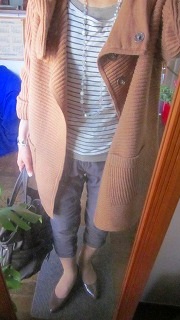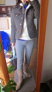 先週の暖かかった日。ダウンはやめてキルティングアウターにして、ちょっぴり春気分に。 あらら、なっていません!一応考えてパンツとブーツは薄手の色合わせにしたのだけど全体の雰囲気が冬っぽい。。。残念(+o+)。この色合いでも首回りとか足首などを出せば一気に春っぽくなるのだけどね。それがまだできないワタシには難しい。春色小物を何か投入するしかないかな。 今日のコーディネートは? ライフスタイル、ライフ、暮らし、生活 コメントをくださるなら別館「アイコ掲示板」 または「おきてがみ」でも 5月の舞台が終わるまでブログを簡素化します。 具体的には、1つの日記にあれもこれも詰め込まない、ってことでしょうか。