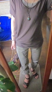実家母は私が身に着けているものに興味を示します。これにも即座に「キレイな色のを着てるね」と。 数年前の as know as セールのサマーニットで気分転換になる色とデザインです。 サンダルは10年以上前の物ですが品質が良いので踵を直して取ってありました。数年ぶりで履いてみる。ヒール2cmほどなのが新鮮です。タンクトップの黒いボーダーと〈色合わせ〉母が靴でもバッグでも初めて見るものにすぐ気が付いて「いいなぁ羨ましいなぁ」的言葉を発するのはちょっとメンドーだったりもするけれど、感情を表してくれるのは嬉しいことです。内に籠り陰々鬱々になることがあって、その時は本人も周りもけっこう辛いおおいに羨ましがって、おおいに楽しんで喜んで、そういう方向に持って行かなくちゃ。って、日々の老人介護の心得でした 今日のコーディネートは? 家族の介護・お世話 クリックが更新の励みになります。いつもありがとうございます。 コメントをくださるなら別館「アイコ掲示板」