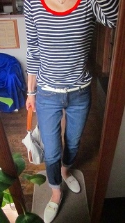 iPhone投稿です。今日は実家母が新しいディケアセンターにお試しで行くため、付き添いです。いま週3回行っているところはあまり動かないらしく母には物足りない様子なので、もう少し身体を動かすプログラムがある所を紹介してもらいました。さて。先日GAPの50%OFFで買ったもの(^◇^)ボーダーのグレーがかったネイビーがきれいで、テロン生地もいい感じ。このようにzaraの黄色トップスと合わせようと思ったら襟ぐりから黄色が出なかったわ(-。-;残念ですがこのコーデは却下でしたが、ゆったりとして着心地良いです。さあ、行かなくちゃ。気合い入れて頑張りましょう。 クリックが更新の励みになります。いつもありがとうございます。コメントをくださるなら別館「アイコ掲示板」