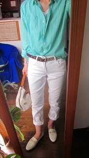 2014年1月からのコーデまとめページに6月分を追加しました。こちらです→☆こんな感じで載せています。 白トップスにブルーデニムが毎日でも飽きないくらい、な今日このごろ。でも〈脳の活性化対策〉の一つでもありブログも成り立たなくなるので、一応あれこれ着ていました外気温が高い日でも家の中はけっこう小寒く、外でも冷房が苦手なので、私はまだ七分袖止まり。タンクトップに長袖シャツを腕まくり、というのがちょうど良い気候でした。着画一覧ページ、よかったらご覧くださいませ→☆ランキングに参加しています。どれかひとつクリック応援してくださると日記更新の励みになります。 今日のコーディネートは? 〓 〓 〓 〓 〓 〓 〓 〓 〓 〓 〓 コメントをくださるなら別館「アイコ掲示板」 〓 〓 〓 〓 〓 〓 〓 〓 〓 〓 〓 ぶろぐ村ランキングで今朝は「ダイエット(総合)12位」「ファション74位」でした。ありがとうございます