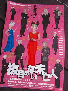 大竹しのぶさん主演の『抜目のない未亡人』を観ました。 新国立劇場中劇場にて。原作:カルロ・ゴルドーニ。 台本・演出:三谷幸喜出演:大竹しのぶ 段田安則 岡本健一 木村佳乃 中川晃教 高橋克実 浅野和之 八嶋智人 峯村リエ 遠山俊也 春海四方 小野武彦 資産家の夫を亡くしたばかりの元女優を巡り4ヶ国4人の映画監督が「映画の資本金」目当てで「夫の座」を競い合う。狂言回しの八嶋、とぼけた老人の浅野はじめ達者な舞台俳優が揃った喜劇です。大竹は劇中劇もどきで次々と声色を替え「上手い女優」であることを再認識させられます。ただお一人、木村佳乃さん。。。主人公の妹で才能のない新人女優役なのだけど。。。年齢設定はどうだったのだろう。若くてぴちぴちした服装と言動そのままの20才前後なのか、それとも頭の軽~い年増なのか?それがずうっと気になり、違和感に最後まで付きまとわれました。ごめんなさい。もうひとつ。これはたぶん単純に「喜劇」でした。シリアスなテーマやメッセージ性を感じられる中にジョークや軽さがふんだんに入れ込まれた三谷作品が私は好きなのだと思います。今回の物は、役者さんたちの魅力を活かしたテンポ良い喜劇で充分楽しいものでしたがちょっと物足りない気がしました。またまたごめんなさい。観劇のコーデです。 UNIQLO白パンツは私が履くと9分丈で(たぶん8分丈として売られている!)真夏に履くと少しうっとうしい。でも冷房の中、長時間座ったきりなのでヨシとしました。二の腕出しっぱなし及び冷房の対策用に羽織りものを迷ったけれど、ストールがやはり便利でした。 今日のコーディネートは? クリックが更新の励みになります。いつもありがとうございます。 8月 6日(水) 【夫とふたり】 ★ビンチョウマグロのカルパッチョ (ビンチョウマグロ)(水菜・タマネギ・アスパラ) ★茄子の甘味噌炒め (茄子・ピーマン) ★切り干し大根の煮物 (切り干し大根・人参・干しシイタケ・油揚げ) ★味噌汁 (小松菜・舞茸) ★16穀米ごはん ★トウモロコシ 8月 7日(木) 【3人】 ★銀ムツの煮つけ ★パプリカとピーマンの煮びたし ★春雨中華サラダ (胡瓜・ハム・春雨・ゴマ・炒り卵) ★切り干し大根の煮物(前夜の残り)+枝豆 ★味噌汁 (エノキダケ) ★デラウエア 〓 〓 〓 〓 〓 〓 〓 〓 〓 〓 〓 〓 〓 〓 晩ご飯一覧はこちらのフリーページに ダイエット経過はこちらのフリーページに載せています コメントをくださるなら別館「アイコ掲示板」 〓 〓 〓 〓 〓 〓 〓 〓 〓 〓 〓 〓 〓 〓 ◆ 8月 6日(水) ◆43.4kg ◆16.4% 前日比 +0.3kg ◆ 8月 7日(木) ◆43.5kg ◆16.9% 前日比 +0.1kg ぶろぐ村ランキングで今日は「ダイエット(総合19位」「ファション108位」でした。ありがとうございます 手作りおうちごはん