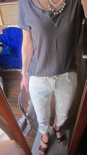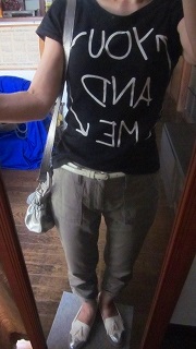 家族元気で留守がいい、とるんるん気分の月曜日です。大汗かきながら着々と家を片付けまくる私を見て、夫も娘もそれなりに部屋の整理をしだし、夫はVHSテープを10袋ほどゴミにまとめました。ああ嬉しい。ここ数日やり続けたので今日は美容院に行くか何か手作りするか、一人を楽しみたいと思います。(明日はまるまる実家day)さて。10日ほど前のコーデ。 娘が職場から駆り出されて地域のお祭りに参加し「見に来てくれると嬉しい」と言うので夕方から出かけたコーデ。職場の方々に会うかもしれないけれど「夏祭り見学」だしってことでこの程度で。このトップスは手持ちの中では「良い物」の類。でも、うっかりするとダラケて見える色と生地です。コットンパールのネックレスと白パテント風ベルト(UNIQLO500円)で少し優しめにしました。が!やっぱりベルトはがっちり茶で引き締める方が落ち着きます。お祭り参加者として待機中の上司の方々とは遠目で挨拶しましたが「ほんとに来たの!」と言いつつも本気で嫌がっている風ではなかったので、行って正解だったようです。そのあたりも私の理解しかねるところです。 今日のコーディネートは? ライフスタイル、ライフ、暮らし、生活 クリックが更新の励みになります。いつもありがとうございます。 コメントをくださるなら別館「アイコ掲示板」