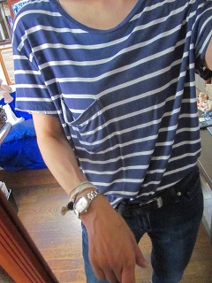 GAPセールのこの紺ボーダーは落ち感ある素材。 タンクトップチラ見せなどで色を足したいところをぐっとこらえてただただ落ち感を活かして(?)ダラッと少年っぽくもいいもんだ。って、ただ着ただけ(見えないけれど)いつものフープピアスとチャームを足してみたゴムブレス。年甲斐もなくこのてのカッコが一番すきなのよねさあて今日は老父母のご要望により、ショッピングモールでアレコレ買い物&ランチ。 (服装はこれではありません)父は電気屋さんで買いたいものがあり、母は衣料品。これがだだっ広いモールの両端にあるときた。耳が遠い父、頭のはっきりしない母、足腰弱ったふたりとの珍道中です。エスカレーターの乗り降り始め、気がかり事項山盛りですが。。。がんばろう。 今日のコーディネートは? クリックが更新の励みになります。いつもありがとうございます。 8月11日(月) 【3人】 ★チキンソテー・ニンニク塩麹漬け (鶏もも肉・ニンニク)(アスパラ・マッシュルーム) ★シラタキとエノキのピリ辛煮 (シラタキ・エノキ・人参) ★クリームコーンサラダ (ブロッコリー・トマト・水菜・クリームコーン缶) ★味噌汁 (茄子) 8月12日(火) 【3人】 ★烏賊じゃが煮 (烏賊・生姜・ジャガイモ・人参) ★鶏ささみと胡瓜のナムル (鶏ささみ・胡瓜・モヤシ・ゴマ) ★サラダ (ブロッコリー・トマト・トウモロコシ) ★みそ汁 (小松菜・舞茸) ★キムラヤの蒸しケーキ 〓 〓 〓 〓 〓 〓 〓 〓 〓 〓 〓 〓 〓 〓 晩ご飯一覧はこちらのフリーページに ダイエット経過はこちらのフリーページに載せています コメントをくださるなら別館「アイコ掲示板」 〓 〓 〓 〓 〓 〓 〓 〓 〓 〓 〓 〓 〓 〓 ◆ 8月11日(月) ◆43.0kg ◆17.6% 前日比 -0.3kg ◆ 8月12日(火) ◆43.0kg ◆16.4% 前日比 ±0kg ぶろぐ村ランキングで今日は「ダイエット(総合25位」「ファション142位」でした。ありがとうございます 手作りおうちごはん