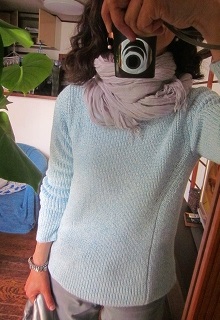 一昨日バスででかけて帰宅したらストールがない!暖かい日で、バッグの柄に取りつけたままだったのが、見当たらないこれの色違いで水色です。 無印のものでとても使い勝手がよく、水色は2か月ほど前に定価2980円を1000円オフで買ったばかりでした。バスを降りてからストールを見た記憶がないため、バス内に落としたのかもしれないバス会社に電話しようか高価なものでもなし諦めようかと迷い、その日はガックリ就寝。。ところがですね、翌日実家に出かけた帰りにバス停からの道を通り、「この辺に落ちてないかなぁ・・」と見たところ、ヒラリと水色がたなびいていますっ!あったのです!道横のフェンスに「落とし物ですよ」的に引っ掛けてありましたこれは私の執着心が起こした奇跡です!すぐ諦めて「また買えばいい」と思っていたらそこで終わりでしたよね。昔から気に入ったピアスもほとんど失くしません。プールのシャワー室で落とした時も流れずに見つかったこともあったし執着心は身を助く? で、このカッコですが。UNIQLOのライトグレーのボーイフレンドアンクルパンツが気に入り連日着ています水色&薄いグレー&白、のシンプルこーでにコットンパールフープピアスをポイントに。 今日のコーディネートは? もっと心地いい暮らしがしたい! クリックが更新の励みになります。いつもありがとうございます。 コメントをくださるなら別館「アイコ掲示板」