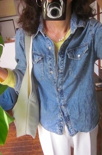 寒がりで冷え性の私ですが、やっと春っぽい服装になりつつあります。3月末のこの日は、まだ秋冬仕様ニットでしたが やっと首元のボタンを外せました。デニムシャツにターコイズの自作ネックレス。 デニムカラー&白&ターコイズは大好きな組み合わせです。 今日のコーディネートは? もっと心地いい暮らしがしたい! クリックが更新の励みになります。いつもありがとうございます。 コメントをくださるなら別館「アイコ掲示板」