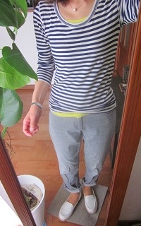先日買った無印ボーダーが大変気に入っております。同じ無印のコットンでも生地感もいろいろ、ボーダーピッチも何種類かありますね。今回のは柔らかく温かみがありました。同じ素材で白無地を探したけれどなかったわ。まだまだ無印初心者です。 Gジャンとカーゴスキニーでファスナー攻め。 さて、今日もいろいろあります!がんばろう! やっぱり好き MUJI 無印良品 今日のコーディネートは? もっと心地いい暮らしがしたい! クリックが更新の励みになります。いつもありがとうございます。 コメントをくださるなら別館「アイコ掲示板」