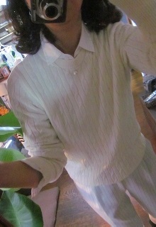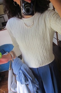 首元に白Tシャツチラ見せ+一粒コットンパール、手首にも白が出るように。なんてことを娘に言うと「またまた」と呆れられますよ。。。去年か一昨年かGAPで購入のきれい色コットンニット。 スリム系パンツではなく、テロン素材のドレープワイドクロップドパンツではどうなの?時間があったので試してみると。。。 着心地は良くとも、このフォルムに納得いかず落ち着かない で、「いつも」の感じだ 今日のコーディネートは? もっと心地いい暮らしがしたい! クリックが更新の励みになります。いつもありがとうございます。 コメントをくださるなら別館「アイコ掲示板」