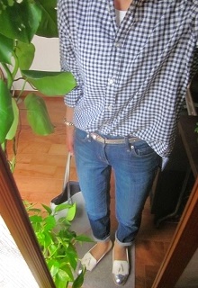 リフォームは、なかなかのトラブルが発生しつつも現場監督さんも職人さんも誠実な方ばかりでなんとか気分よく進んでいます。っが!忙しい~!キッチン収納にも手こずって、頭はいっぱいいっぱいです。。。今、ほしいもの。炊飯器を乗せるための小さめすっきりワゴン。調味料入れも検討中。慌てて買わずにじっくり考えたいわ。。。先日、買い物→実家のカッコ。 ギンガムチェックの綿シャツを新しく買いました。ギンガムはネルシャツ(つまり秋冬仕様っぽい)しか持っていませんでした。今まで何度も迷って買わずにいたのですが、今回は「決めポイント」がありました 後ろ裾が長いのはもはやアリアリでも、後ろ裾のみ黒バイアス縁取りが可愛い。薄手でパリッとした生地も良し!白パンツでおしゃれっぽくもイケるはず!!!niko and にて40%オフで。ベルトと靴先のシルバーをリンク。首元の白タンクトップもひそかに拘って 今日のコーディネートは? もっと心地いい暮らしがしたい! クリックが更新の励みになります。いつもありがとうございます。 コメントをくださるなら別館「アイコ掲示板」