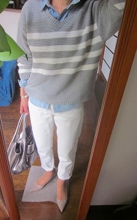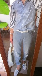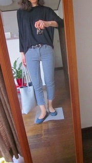 寝不足です!明け方3時頃に目が覚めてしまい、起床する6時頃までうつらうつら。。。アレコレ悩むことがあるといつもこれだ。このところ一番の悩み事はやはり実家父母のこと。アルツハイマー型認知症で家事はほとんどできなくなった母とひどい難聴でありながらまともな補聴器は拒否している父。父は数か月前から腰痛がひどくなり、介護ベッドを使用し始め、母にお風呂の介助もさせている。微妙な二人の助け合いで成り立っている生活は、ほんの少しのアクシデントで崩壊するでしょう。そのとき私は?考えると眠れないのよ~ここで、その母が膝痛になり歩行困難になりました。4年前には2か月寝込み、おむつ生活から認知症も悪化したものの、何とか快復しましたがさて、今回はどうなる? 家族の介護・お世話昨日、病院内では慣れない車椅子使用。それってなんだかなぁ、いっぱしの介護者気分になりますよの、介護者コーデ。 先日買ったUNIQLOのライトグレーのボーイフレンドクロップドパンツが使える!ブルーデニムより優しい雰囲気になりますね数年前のUNIQLOのストライプシャツとのこの色合いの相性も嬉しい。 安易ながら、小物の白効かせがポイントかと。バッグは裏白・ロゴ白のニュアンスカラー。なんて、しょうもないことを語って気分を上げてみる 今日のコーディネートは? もっと心地いい暮らしがしたい! クリックが更新の励みになります。いつもありがとうございます。 コメントをくださるなら別館「アイコ掲示板」