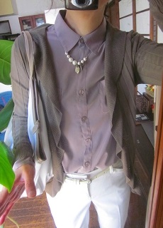 今日のカッコ。私にしては小ぎれいです。 テロン素材シャツにロングカーデ(ヒップ隠れるほどの)どちらもニュアンスある色合い、というか、そのままではくすんでしまうので首元には自作ネックレスで白を入れ、パンツも白。数年前のUNIQLOアンクルパンツです。靴はシャツに近い色のパンプスで。 どこに行ったかというと和食ファミレスですが 実家老父の誕生日祝いで弟家族も含めての昼食会をしました。父は満90歳になり、「卒寿」というお目出たい節になるのでホテルの個室等で仰々しく(?)と思わなくもなかったけれど、体調を考えて近場のファミレスにしました。 家族の介護・お世話 実は2年前の3月に、老父母+私+オットの4人で一泊で温泉に行ったのですが(老父の出費で)その豪華な夕食の席にて「4月で88才になるよ。こうして(車で)旅行に連れて来てくれて嬉しいよ」と言われガガ~ン!世間では88才といえば家族が「米寿のお祝い」とかするもんですよね。。。気になったもののその年は諦めたのでした今回、ファミレスでのお手軽食事会でしたが、父は通院以外での外出は半年ぶりくらいだったしお正月以外に孫が揃うことも珍しいので、とても喜んでくれました。 今日のコーディネートは? もっと心地いい暮らしがしたい! クリックが更新の励みになります。いつもありがとうございます。 コメントをくださるなら別館「アイコ掲示板」