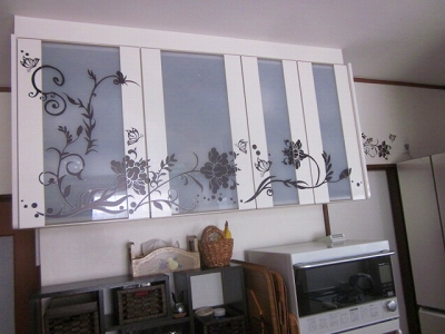 キッチンキャビネットにウォールステッカーを、やっと貼りました。外光の反射でグレーっぽく見えますが、実際には真っ黒です。 キャビネットだけでなく、壁にも少し流れるようにレイアウト。 14パーツほどに分かれた、このような形で届きます。 でき上り使用例はこちらですが、私は全く変えました。 こちらのサイトにて購入。→☆レイアウトするのは、楽しかった~ シツコイですが、実際には真っ黒なので隣室の障子の桟の黒とリンクして引き締まって見えます心配していた扉の開き部分や、段差など、ザックリと貼ってからカッターで切りました。 数回貼り直しても問題なし!大満足でございます。 片付けて プチストレスをなくしていく リフォーム、増築、改築 クリックが更新の励みになります。いつもありがとうございます。 〓 〓 〓 〓 〓 〓 〓 〓 〓 〓 〓 〓 〓 〓 晩ご飯一覧はこちらのフリーページに ダイエット経過はこちらのフリーページに載せています コメントをくださるなら別館「アイコ掲示板」 〓 〓 〓 〓 〓 〓 〓 〓 〓 〓 〓 〓 〓 〓