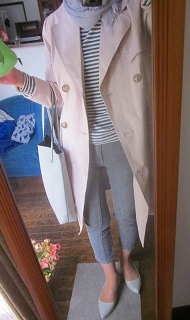 家のリフォームの本契約がやっと済み、細かい打ち合わせやらなにやら慌ただしいです。実家父が昨日めでたく満90才になり近々お祝い会をしますが、老父母の体調が安定しているのはありがたい。先日の買い物コーデ。 娘のコートをこっそり着てみる!グレイッシュピンクとでもいうのかしら。一緒にアウトレットに行ったときに私が着るつもりで勧めたものです娘はHAHAのものをトーゼン着ますが、自分のものはジブンだけのもの!なのでほんとにこっそり。でも一回だけにしましょ。汚しそうだし、かわいそうだし、ね。グレー系+ピンクで束の間春気分になれたので、これで満足です 今日のコーディネートは? もっと心地いい暮らしがしたい! クリックが更新の励みになります。いつもありがとうございます。 コメントをくださるなら別館「アイコ掲示板」