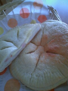 だいぶ日がたってからの日記で大変申し訳ないですやっと行ってきました新しいパン教室今回のパン教室は、市の公民館のようなところで格安料金で教えていただけるパン教室安いだけに、設備やもろもろのことはあまり気にしないで、楽しもうと行ってきました先生は、60代半ばくらいの上品な先生でとってもいい感じそして、この日作ったパンは「チーズサンドパン」中にチーズとベーコンが入った惣菜パンでした。作り方が、今までとは違って、材料を入れたら、まず木べらで5分ほど混ぜる。少し寝かせて、さらに混ぜる・・・たたいたりするより、混ぜることによって、余計な負担を生地にかけないためのようです。余計な負担をかけないぶん、発酵が早く進み、パンが出来上がるまでの時間が短いとかその後は、普通にこねたりしたんですけどね。私としては、初めての作り方で新鮮でした。そして出来上がりはこちら。 もともとこういうパンなのか、私には膨らみが足りないような気がしましたが試食・・・出来立ては、中身のチーズがとろーりとろけて美味しかったでも、パン自体でいうとどうなのかな・・・ちょっと生地がつまってるような・・・初回なので、この作り方はこういう特徴なのか、それとも私の作り方が悪かったのかちょっとよくわかりません回を重ねれば、わかってくるのかな~とにかく次回もまた楽しみにしたいと思います