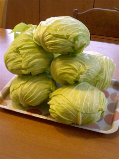 見てください。このキャベツおいしそうでしょ近所のおじさんが7個もくれたのですありがたーいんですけど、毎週のようにいただくキャベツ。さすがにもうネタがつきるんですけどロールキャベツはコンソメ、ぺシャメルソース、コーンクリームなど。そのほか、ポトフ、回鍋肉、野菜炒め、中華風肉団子スープ・・・鍋には白菜の変わりに入れたり。いろいろ使っても、まだまだ増えるばかりのキャベツなの今年は、キャベツは高かったので、本当にうれしいんですよお友達にもわけて、喜んでもらえるしでも、さすがにもうマンネリどなたか、キャベツレシピ、教えてくださ~いそして、今日の夕飯も、またロールキャベツにでも、パパも子供もロールキャベツに飽きているので、今日は和風にしてみましたえのきとほうれん草のはいった、和風あんかけロールキャベツと思って食べると・・・???頭がロールキャベツの味を求めてしまって、???がいっぱいになるけど、全く別の和風料理と思って食べると、なかなかおいしい今日は鳥ひき肉で、えびも2尾たたいて入れてみました。えびのお味がポイントかもそして、おろししょうがも、アクセントできいてましたまだ、キャベツ2個あります~キャベツレシピ大募集中です