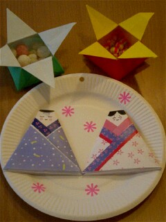 今日は午前中はサークル、そして午後は幼稚園説明会。またもや、忙しい日だった~(@_@)サークルでは、手遊び、絵本の読み聞かせ、あとはその月の季節にあった工作や行事などを行ってて、今日はひな祭りも近いので、お雛様の工作だった。我が家は女の子がいないので、ひな祭りには、とんと疎いんだけど、お雛様を作って、ひなあられを食べ、ひな祭りを満喫させてもらったよ♪写真が、つくったお雛様です(^^)そして、サークルが終わった後、息つくまもなく幼稚園へ。今日は、重要なクラスがわかる日だったんだけど、残念ながら、知ってるお友達けっこういる幼稚園なのに、誰も一緒じゃなかったよ(>_