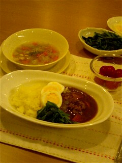 今日は、高知旅行でのご馳走続きで、胃も若干もたれ気味なのでカレーにすることにしました!昨日、遊びに行ったお友達の家もカレーで、なんだか無性に食べたくなったのよねそのまんまカレーなんですけど、お米にサフランをいれて炊いてほのかに黄色いサフランライスにしていますそれから、ほうれん草を炒めたものをトッピングこれは、OL時代によく食べた、新宿アイランドタワーB1FにあるS&Bカレーの王様の「ほうれん草カレー」を真似して、ほうれん草があるときは、いれるようにしていますカレーの王様の「ほうれん草カレー」はほうれん草と温泉半熟卵がトッピングしてあって、辛めのカレーに混ぜるとまろやかになり、とってもおいしいの家でも、ほうれん草と温泉半熟卵にしたいところなんだけど、子供が喜ぶので、ゆで卵をトッピングうちの子は、カレーを食わず嫌いだったけど、ゆで卵とサフランライスにしたところ、「うわ、おしゃれなカレーだね」と、以前より食べるようになりましたそれから、キャベツとベーコンのスープを添えました近所のおじさんからキャベツを2ついただいてしまって(^^)キャベツ料理、考えなくちゃそうそう、ラジコンやっと届きました電池が充電式だから、4時間充電するために、昨日は遊べなくてやっと念願のラジコン、息子は大喜びで遊んでいましたわかりづらいけど、ライトがついてるのわかりますか?これが、このラジコンのこだわり仕様だそうです(^^ゞ外遊び、今日は寒かったな・・・明日は暖かくなるといいけど、花粉がそういえば、今日もカレーなのに、あんまり香りがしなかったな春なのに・・・いやな季節になりましたね