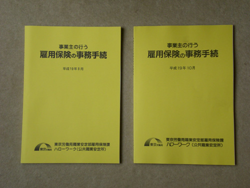東京のハローワークに限らずでしょうけど、色々と情報提供してくれています。毎年この時期になると下の写真にあるような冊子を都内のハローワークでは「フリーマガジン」じゃないですがたくさん置いてありまして、私もお客様に届けたり、時々は自分でも眺めてます。離職票の書き方分からない事業主さんで、我々に頼らず頑張って自社で処理する方には非常に重要な情報提供紙です。本音を言うとね・・・私に仕事下さい!ですけど。ま、毎年でてるんで、今年も出てました。でもね、今年は2つ出てるんです。ご存知の方も大勢いらっしゃると思いますが、この10月から雇用保険法の改正が施行されます。離職票の書き方等大きく変わることもあり、法改正バージョンは必要です。でもね、なんで旧法のものを今までどおり8月にお出しになるの?ここです、私が言いたいのは!これを作る予算は労働局さんのおごりですか?そうじゃなくて税金でしょ?8月バージョンを作ろうとする段階で10月の法改正を知りませんでしたとは言わせません。って事は何、税金の無駄遣いですか?労働局は国会がしどろもどろしている間にうまいことやってくれました、桝添さん・・・貴方はどうお考えでしょうか?こうやって、我々の税金はゴミのように捨てられていくのかな?