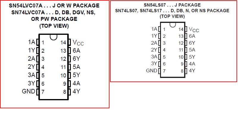 写真のLVC07A(MAX6.5V)を74LS07D(MAX30V)に変更します。