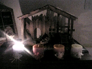 12/7になりましたので馬小屋にマリア様とヨゼフ様を追加しました。ロウソクも今週から2つ灯すようになります。もう直ぐクリスマスです。CB00036 アラバスターマリア像