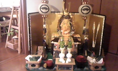 雨の為、午後からの練習は中止になった。そこで、5月人形を出すことにした。3月はいそがしく雛人形を出しそびれてしまった。きっと娘は行き遅れることでしょう・・・。息子は???、可愛いお嫁さんをもらえるのでしょうか???はなはだ不安である。(笑)