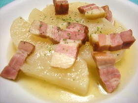 秋の旬野菜で栄養満点の「大根」のレシピを紹介します。「大根とベーコンのスープ煮」材料 ( 2人分 ) 大根:300g ベーコン(出来れば塊で):120g 顆粒コンソメ:大1 ローリエ:1枚作り方1大根は2~3cm厚さの半月切り、ベーコンは1口大に切り、圧力鍋に入れて水500ccとコンソメ、ローリエを入れて火にかける2圧力がかかったら6分加熱そのまま圧力が抜けるまで放置蓋をあけ、塩コショウで調味したら出来上がり【メール便可】クッキングハーブ 「ベイリーブス(SPICE)(ローリエ)」 【ホール】 1袋15g入