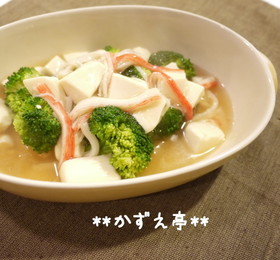 旬野菜で栄養満点の「ブロッコリー」のレシピを紹介します。「ブロッコリーの豆腐あんかけ」材料 ( 2人分 ) 絹とうふ:1/2丁 ブロッコリー:1房 かにかま:3本くらい 固形コンソメ:1こ 水:300cc 片栗粉:大さじ2 塩:少々 こしょう:少々1、とうふを食べやすい大きさに切っておきます。(あまり小さく切らないのがオススメです)2、ブロッコリーはレンジでチンしておきます。この時点で食べられる固さにしておく。3、小鍋に固形コンソメと水を入れ、沸騰してきたら、とうふを入れて、少し煮ます。とうふがあたたまったら、かにかまを割いてちらします。4、3に、水(分量外)で溶いた片栗粉を入れ、とろみをつけます。味をみながら塩・こしょうで調整します。5、2でチンしておいたブロッコリーをお皿にもり、4のあんかけをかけたらできあがり洋風だし。コンソメスープに固形ブイヨン送料無料 マッセル ブイヨン キューブ固形コンソメ(ビーフ)7個いり×20本