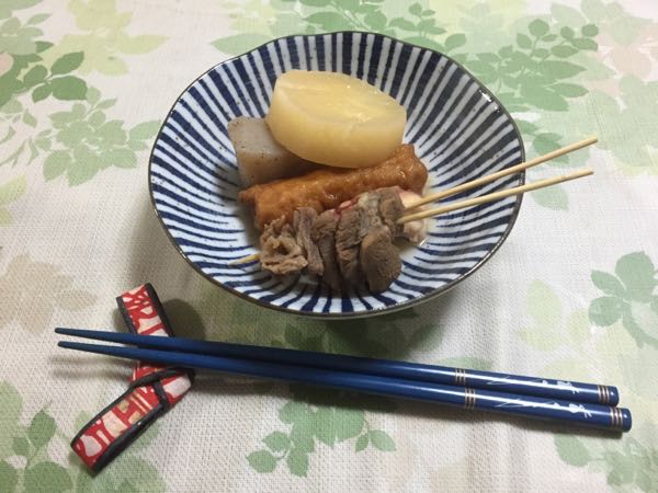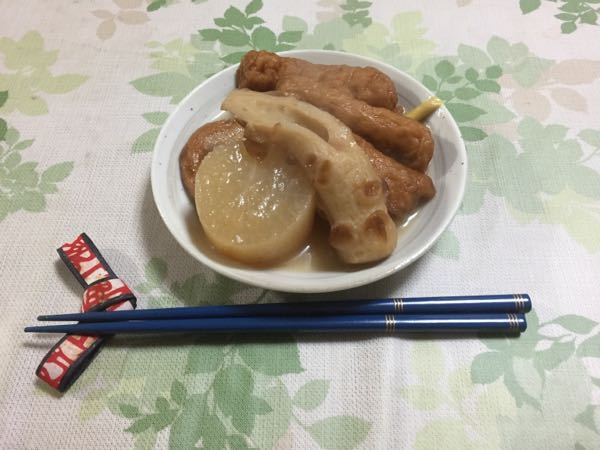今日の夕食は昨日のおでんの残り、鉄火巻、つみれ汁でした。