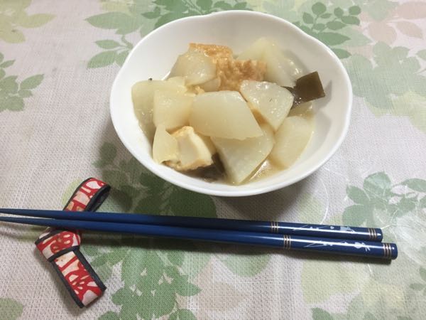 今日の夕食はかぶらの炊きもの、鶏つみれ焼でした。