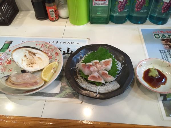今日の昼食はキンキの炙り、煮付け、大はまぐり焼、鯨赤身刺身とわかさぎの天ぷらでした。