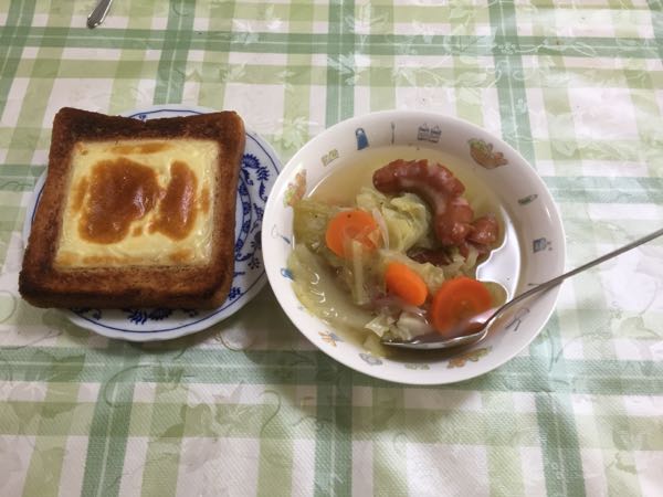 今日の朝食はチーズトーストとキャベツとウィンナースープでした。 京都産 きゃべつ1玉≪野菜・キャベツ≫